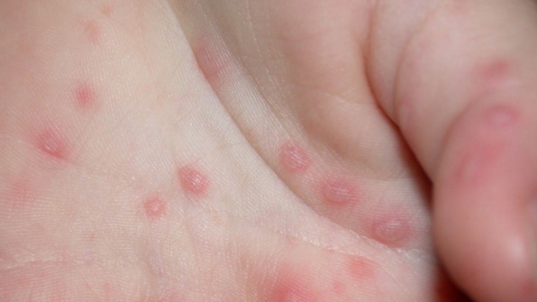 발진은 손발에 잘 나타나며 손등과 발등에 더 많이 나타납니다.엉덩이, 사타구니에도 발진이 납니다.발열, 무력감, 식욕 감소, 설사가 나타납니다.