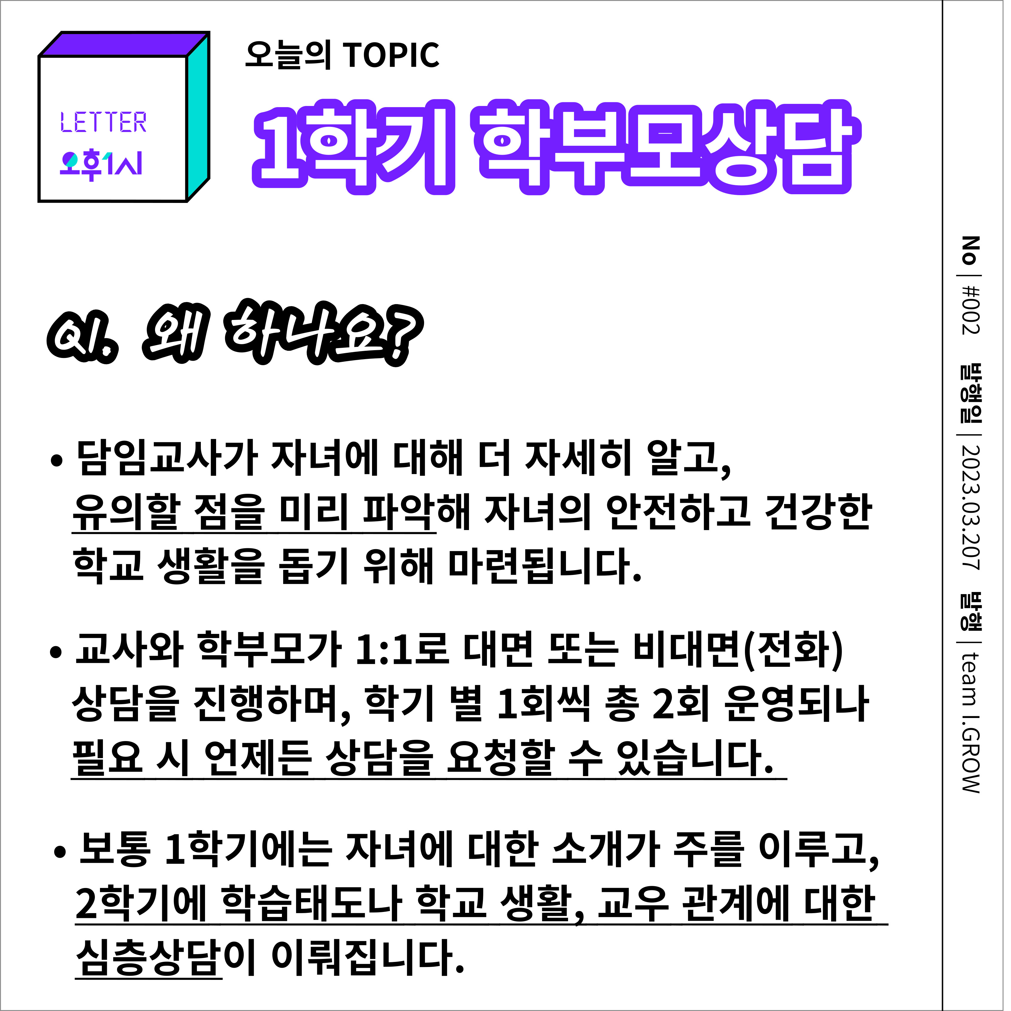 반드시 학부모 상담 후 담당 담임선생님께 문의하시기 바랍니다.