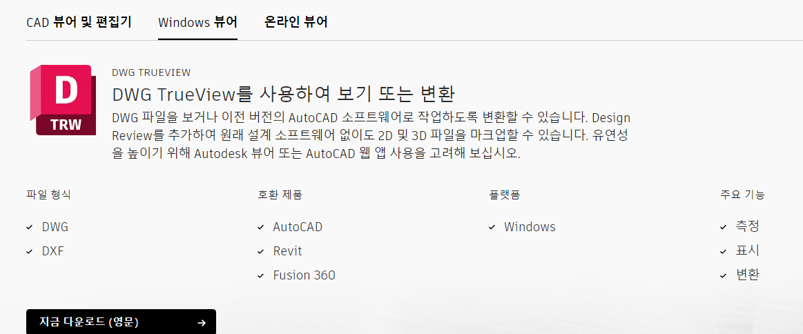 AutoCAD Viewer 다운로드 설치 지침(auto cad DWG DWF 파일 보기)